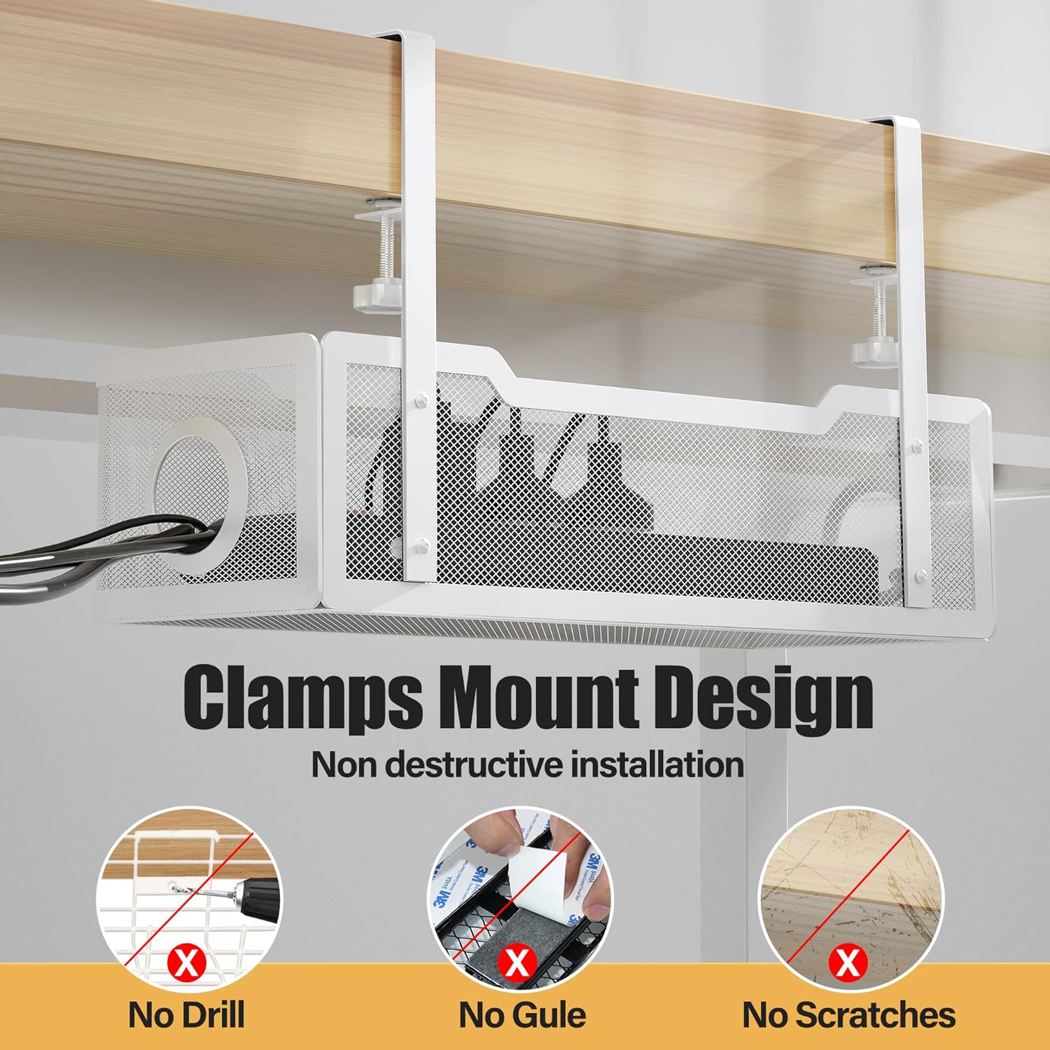 Designed with convenience in mind, this cable tray comes with a sturdy clamp that easily attaches to your desk, keeping cables neatly in place and out of sight. The Cord Organization Box is ideal for both office and home use, ensuring a clean and organized environment without any damage to your desk.